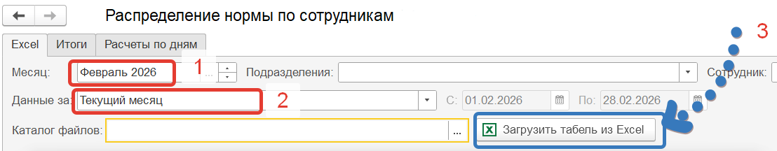 3. Нажимает кнопку «Загрузить Табель из Excel».